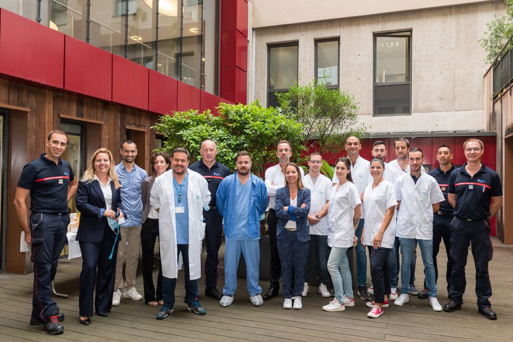 - Pour le groupe Oc Santé : Guillaume PONSEILLÉ, Directeur général du groupe Oc Santé – Dr Bertrand ABBAL, Président de la Commission Médicale d’Établissement de la clinique du Millénaire – Dr Sébastien FOURNIER-FAVRE, Président de la Commission Médicale d’Établissement de la polyclinique Saint-Roch – Pascale MOSCHETTI, Directrice de la polyclinique Saint-Roch – Christelle BECHARD, Directrice de la clinique du Millénaire – Claire MARGARIT : Directrice de la clinique Clémentville, 10 sapeurs-pompiers volontaires salariés des cliniques Millénaire, Clémentville et Saint-Roch