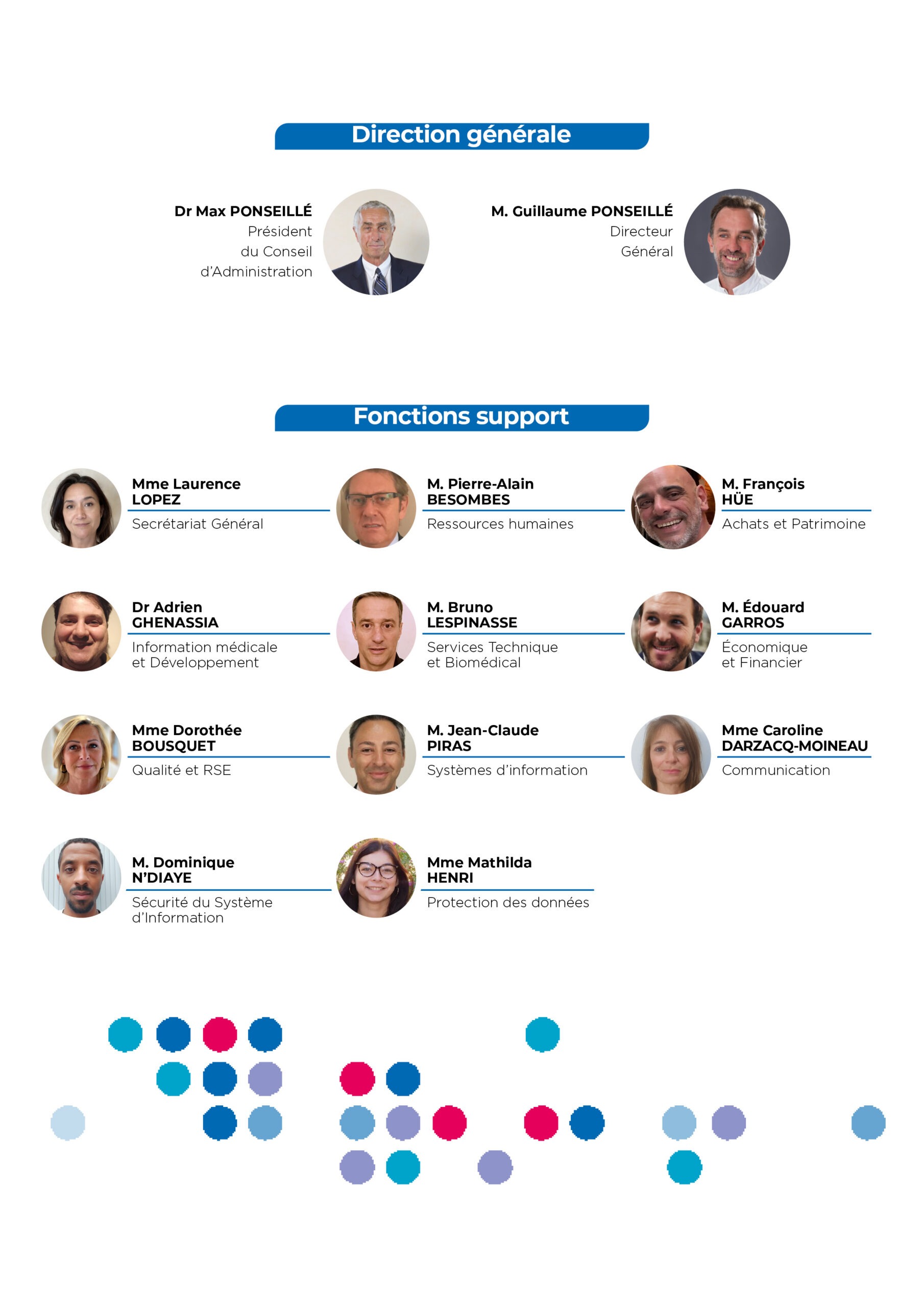 - De services logistiques : ressources humaines, gestion des systèmes d’information, information médicale, finances et comptabilité, service technique et biomédical, restauration